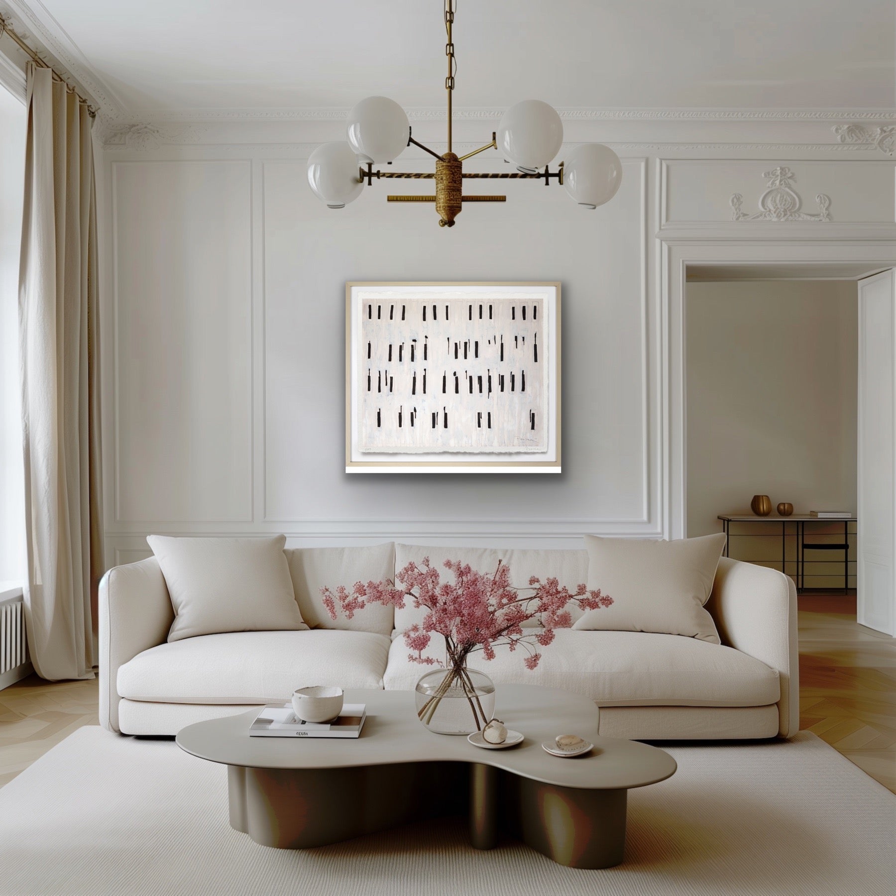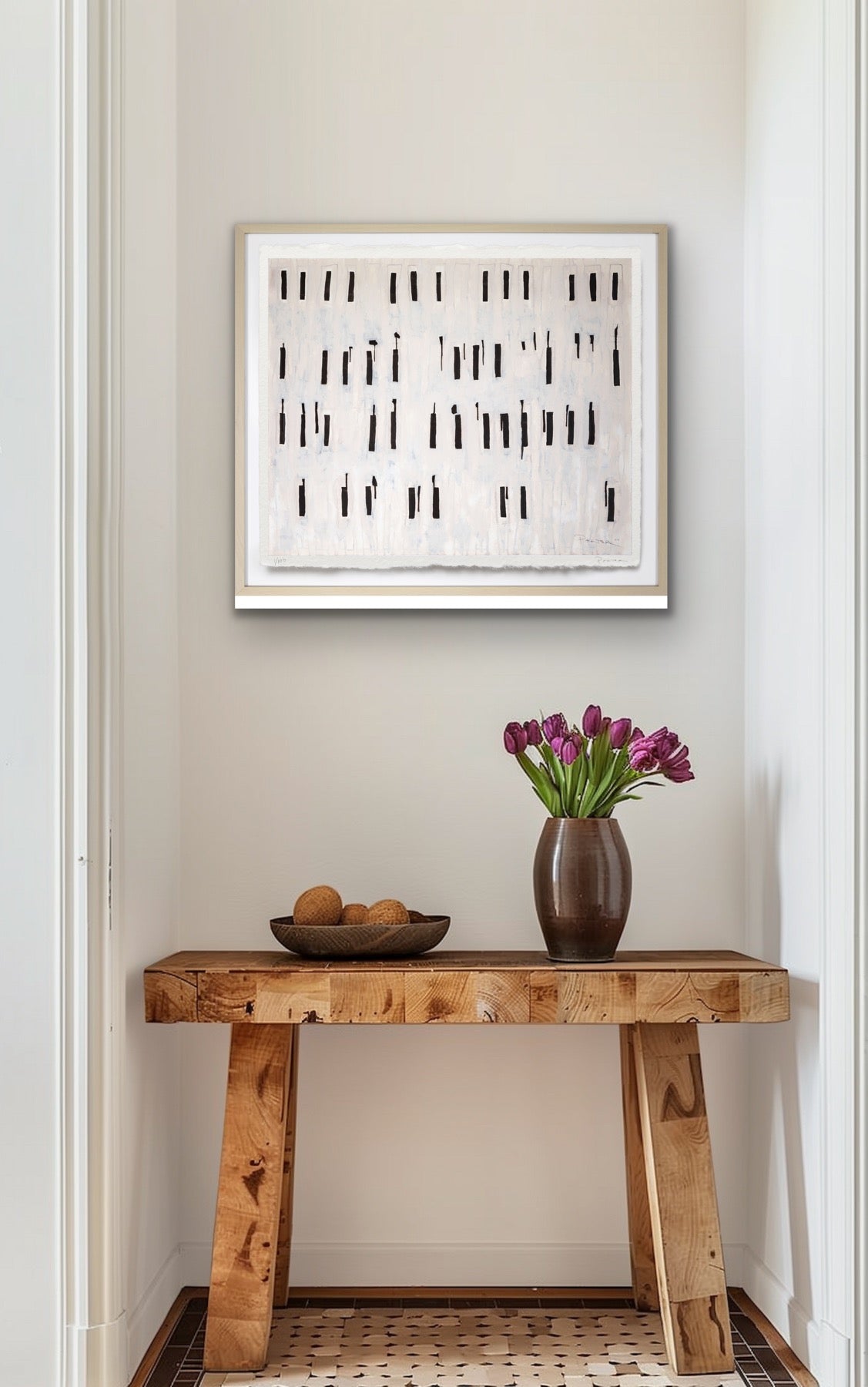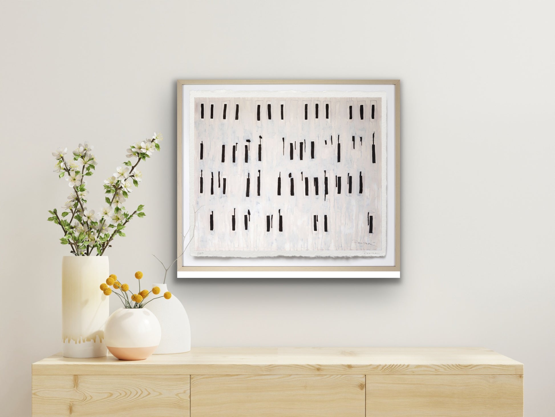 The artwork is unframed, on a heavyweight paper with a deckled edge. Framed imagery is shown on website for visualization purposes only.