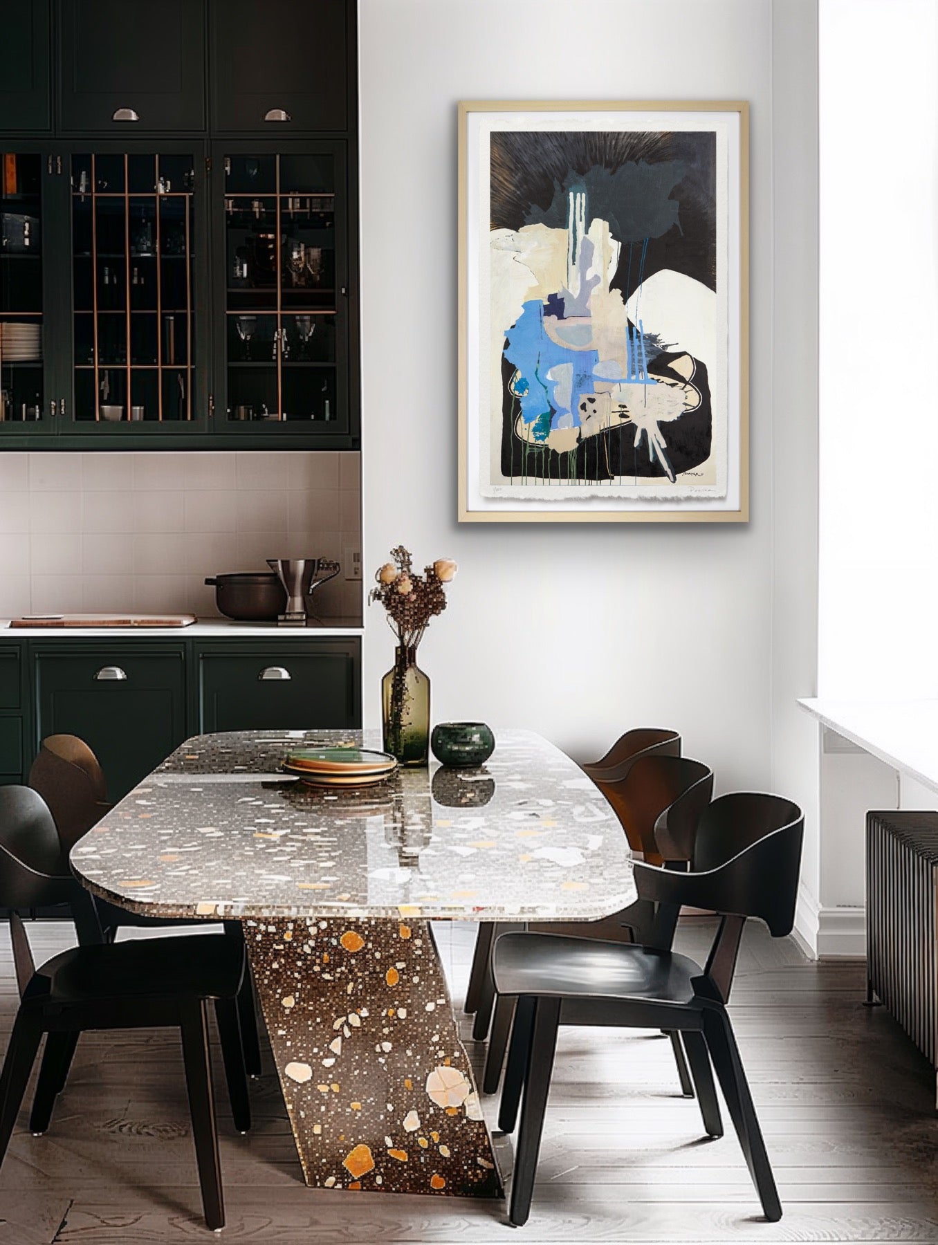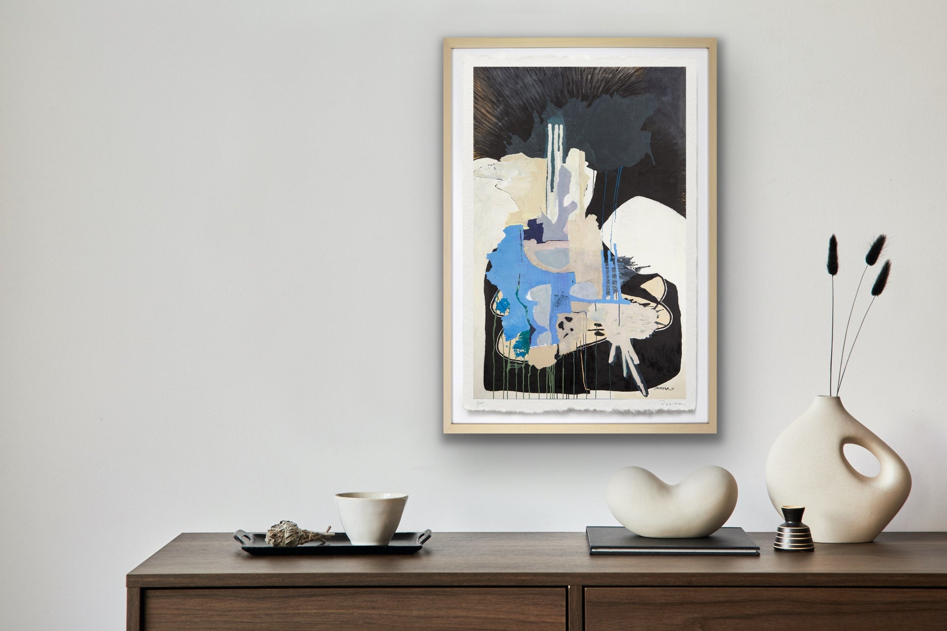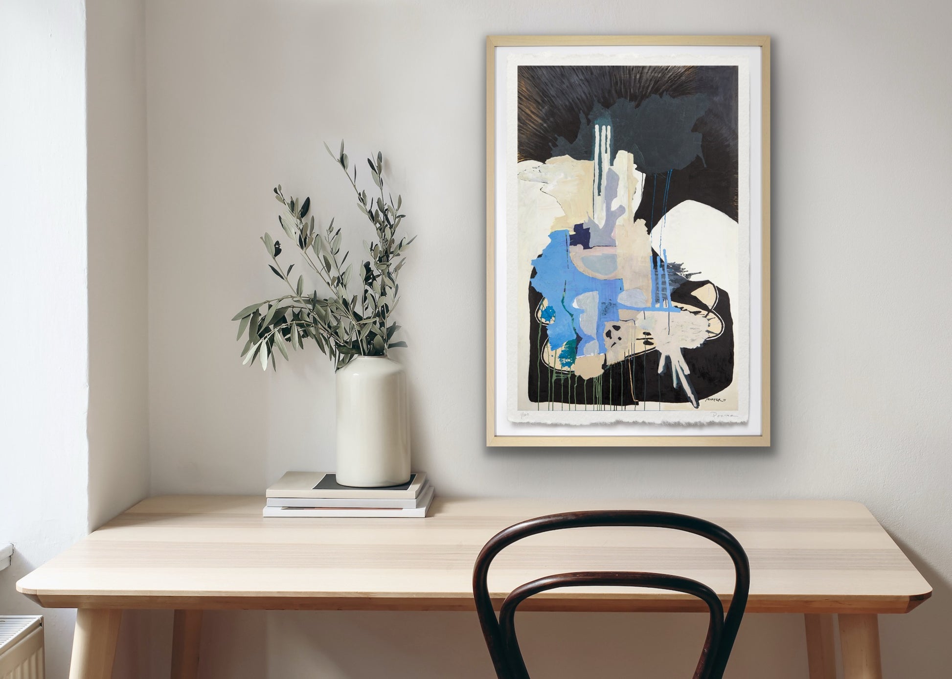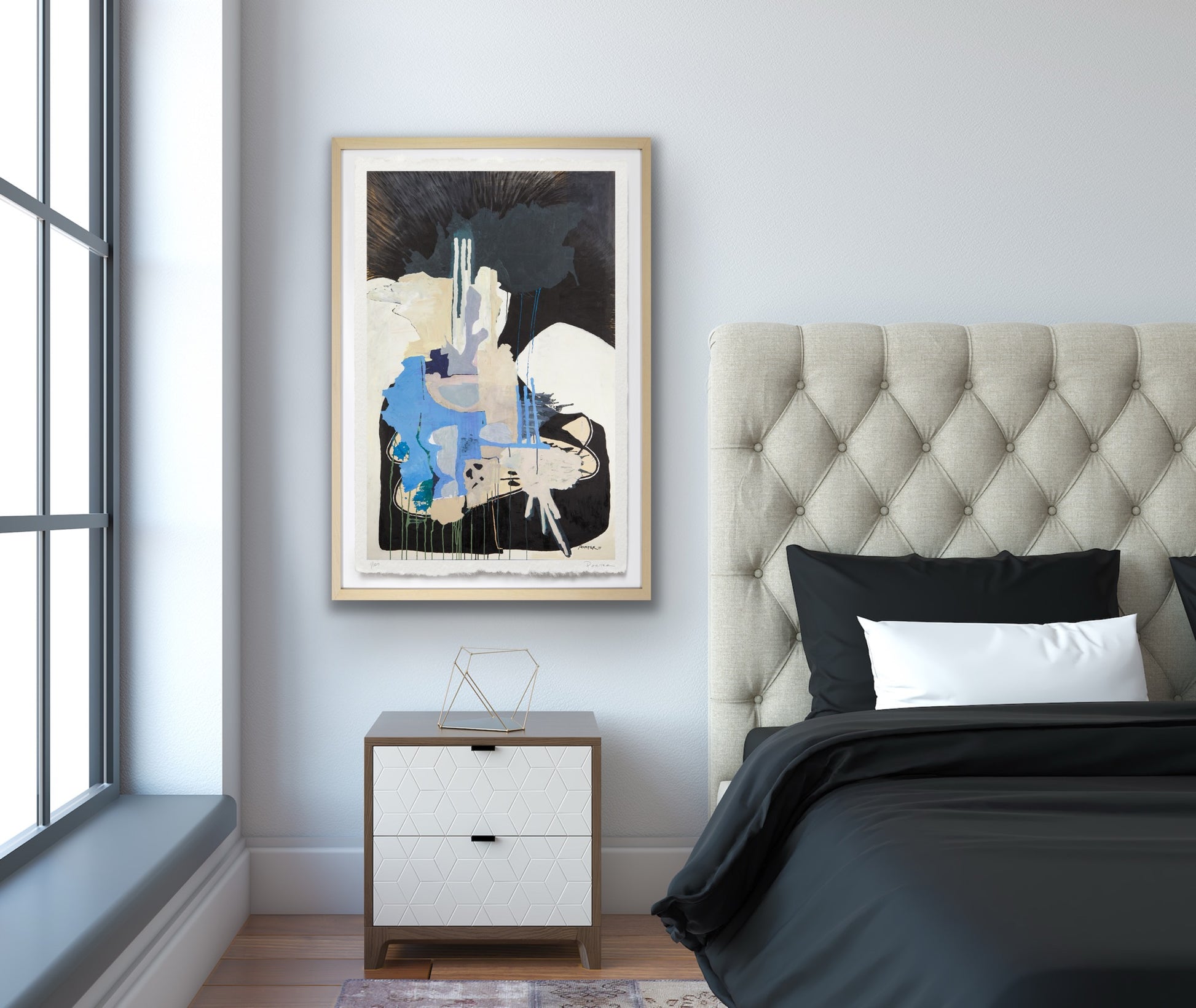 The artwork is unframed, on a heavyweight paper with a deckled edge. Framed imagery is shown on website for visualization purposes only.