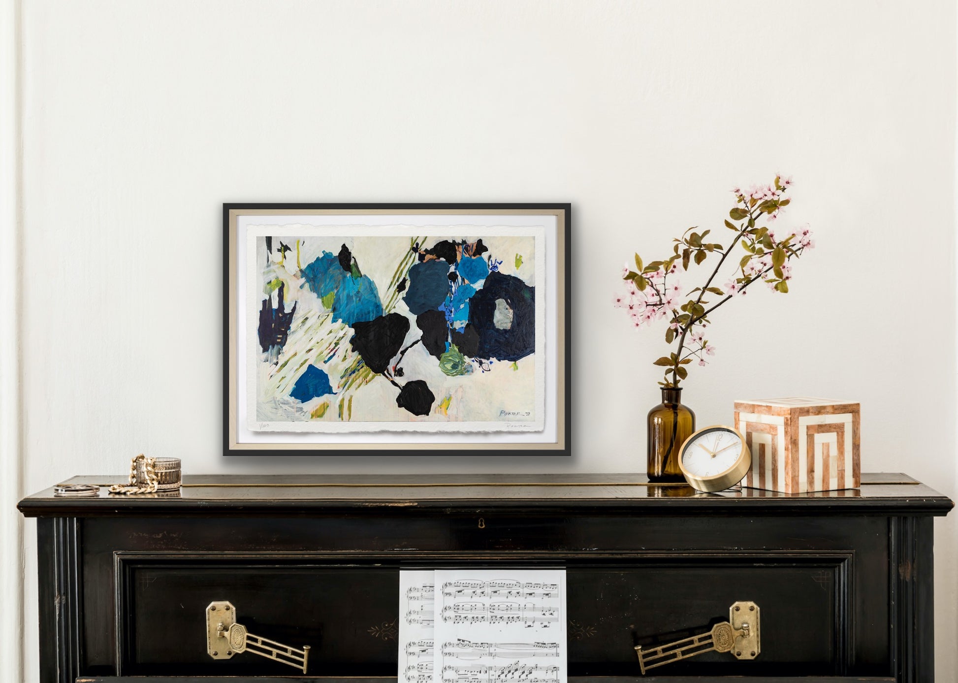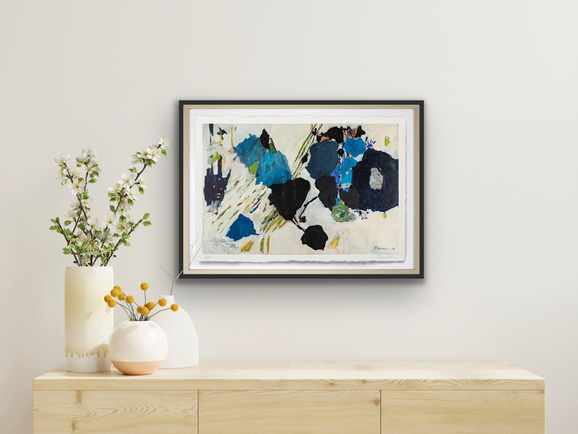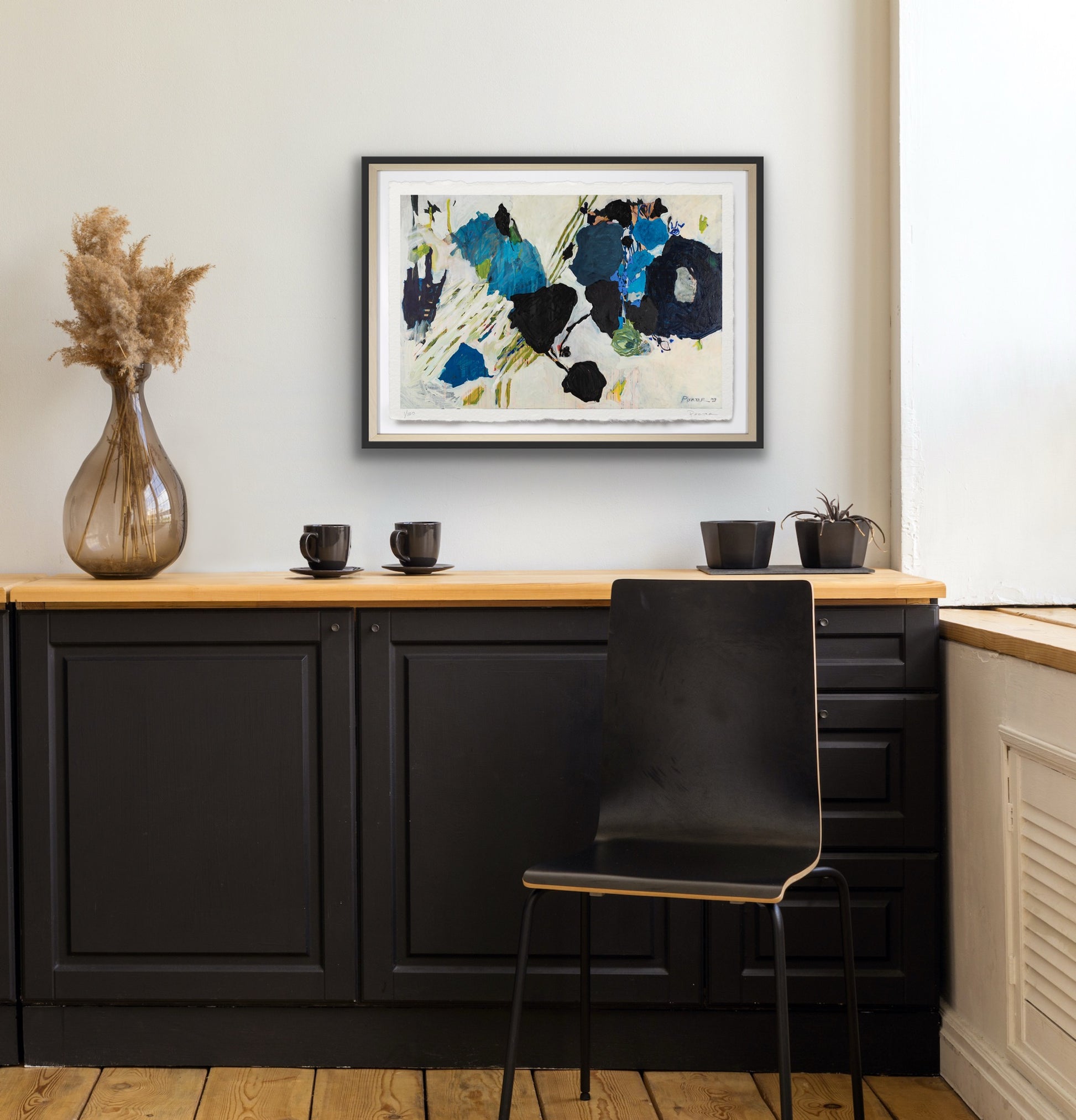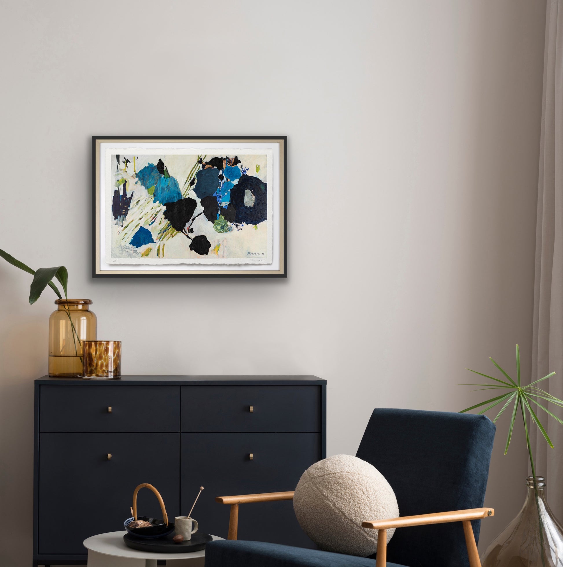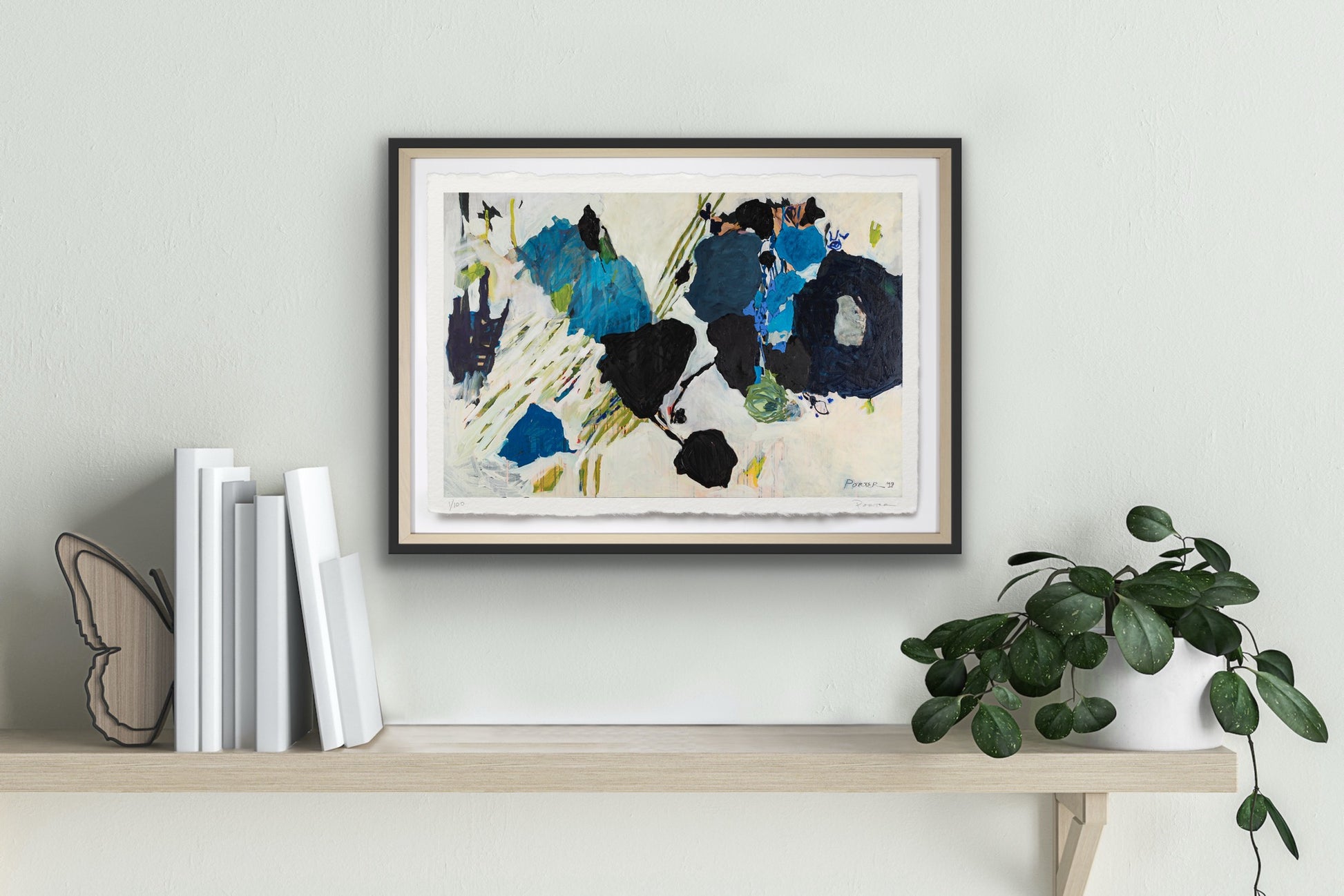 The artwork is unframed, on a heavyweight paper with a deckled edge. Framed imagery is shown on website for visualization purposes only.
