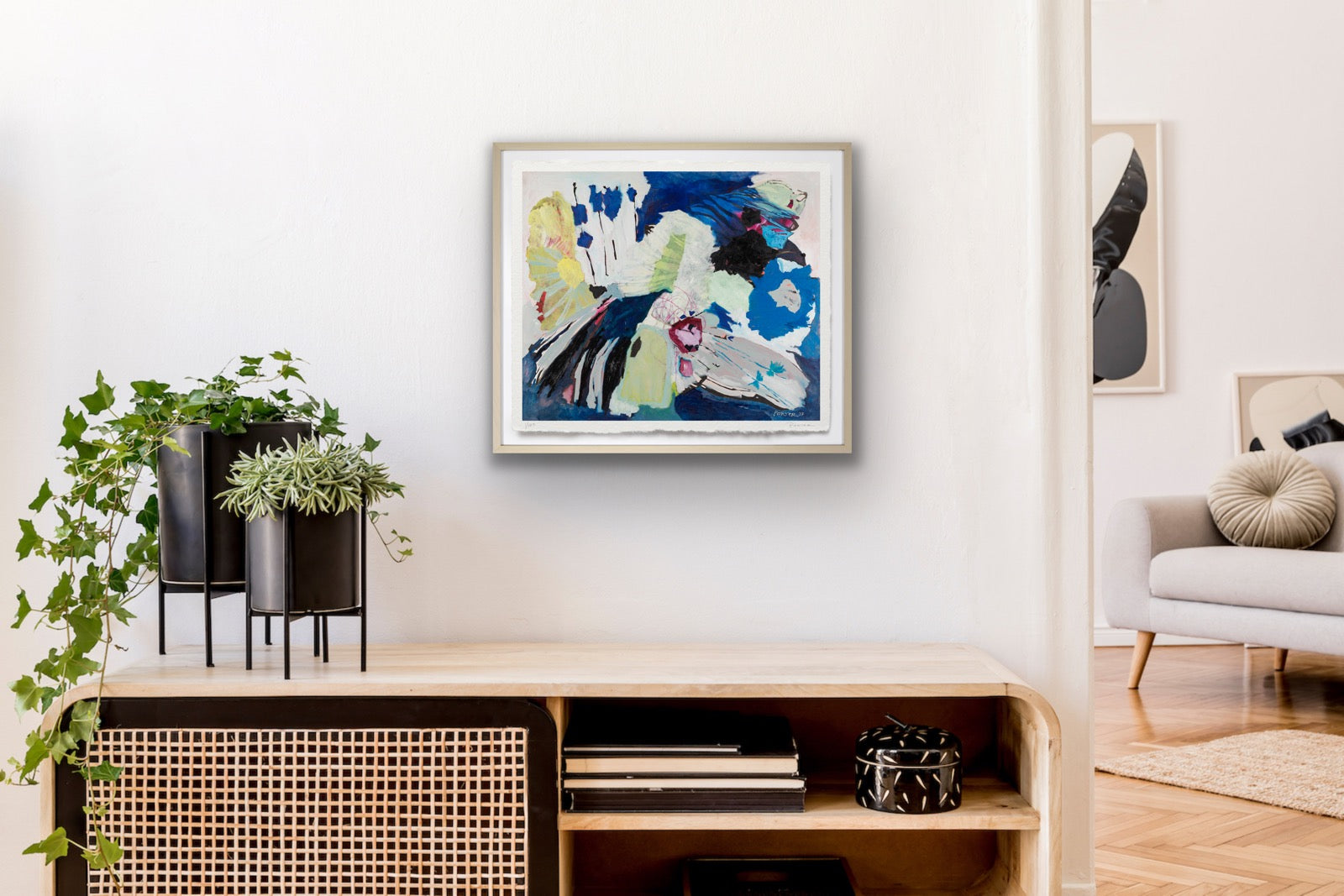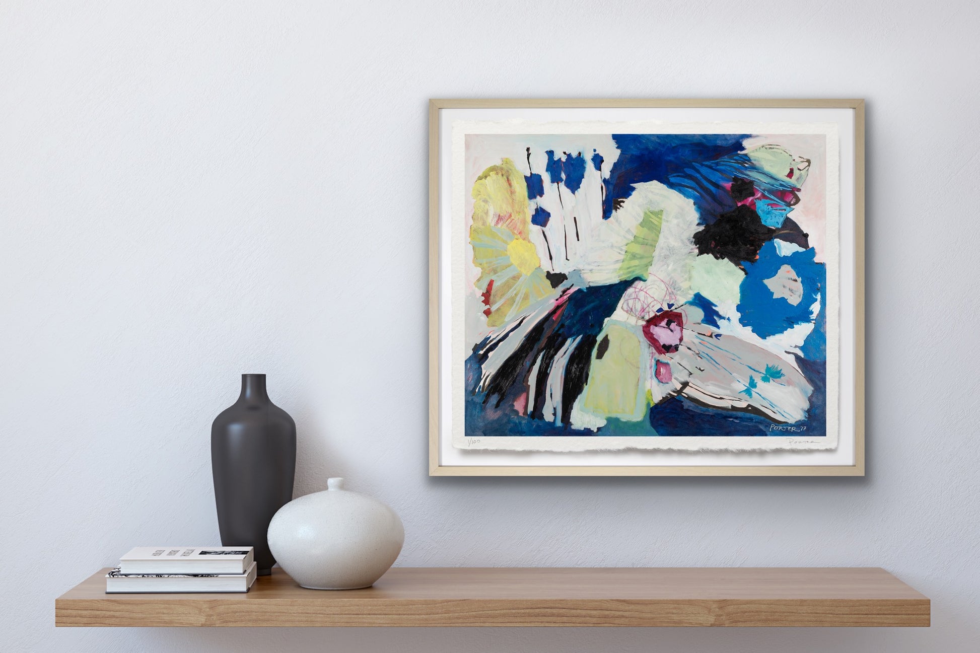 The artwork is unframed, on a heavyweight paper with a deckled edge. Framed imagery is shown on website for visualization purposes only.
