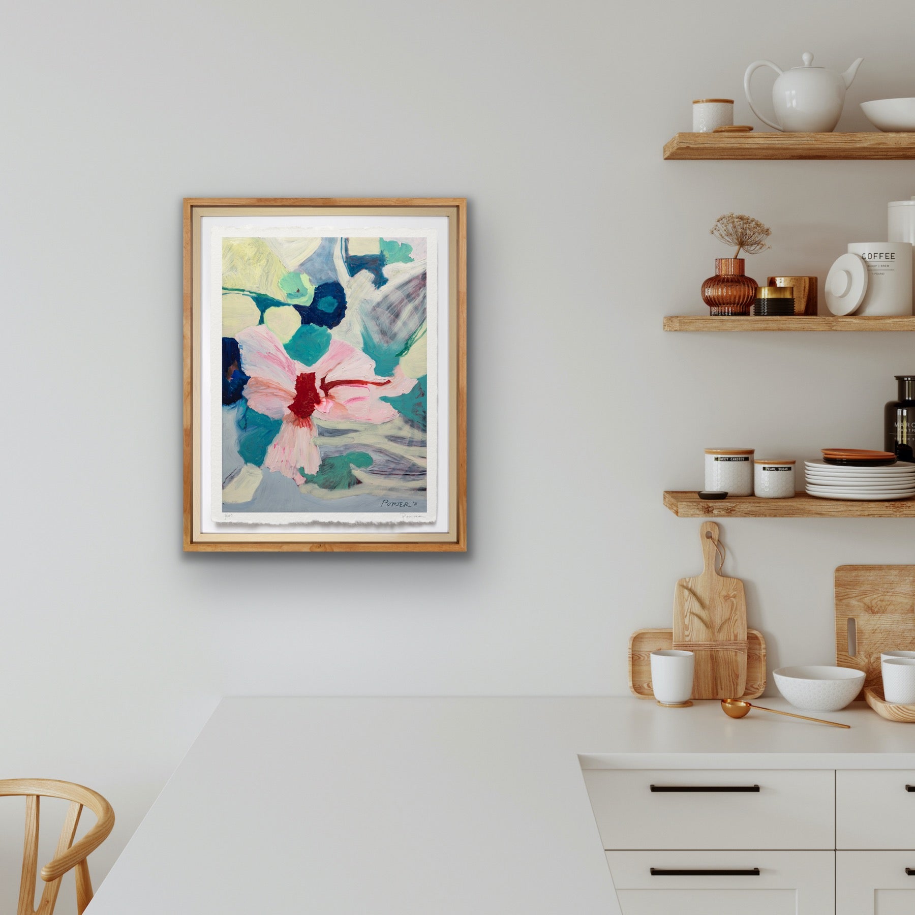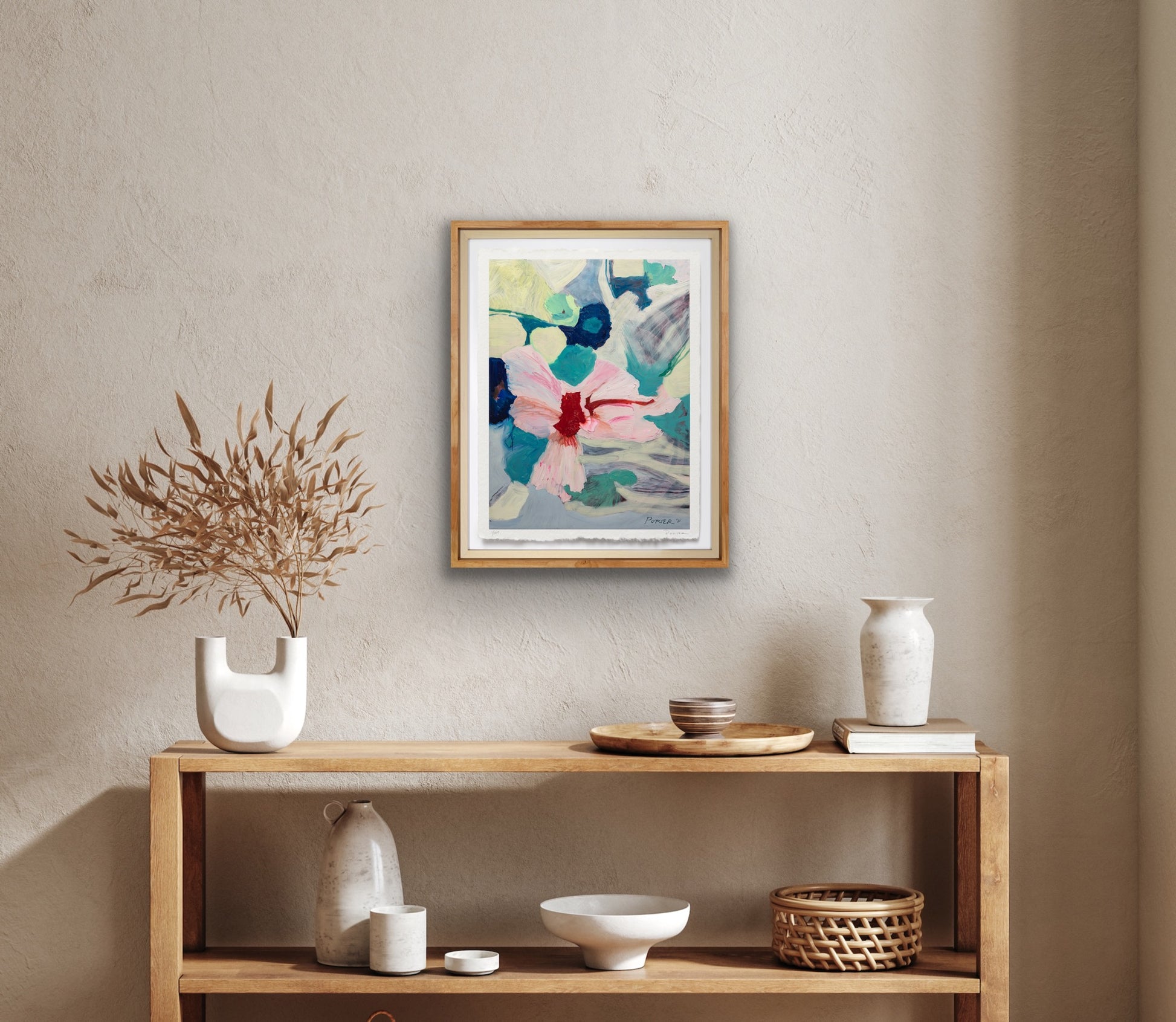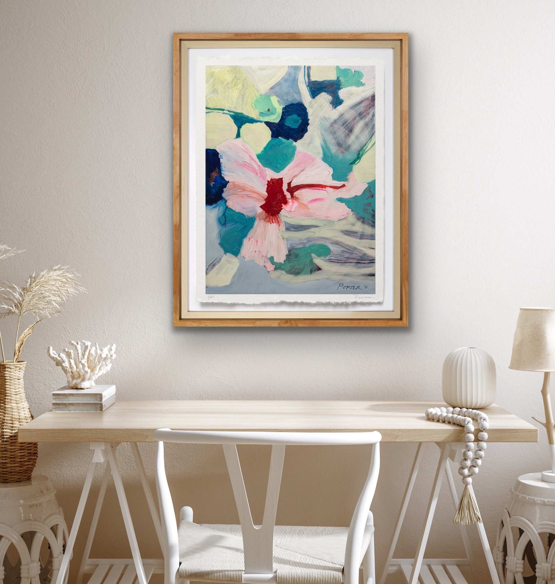 The artwork is unframed, on a heavyweight paper with a deckled edge. Framed imagery is shown on website for visualization purposes only.